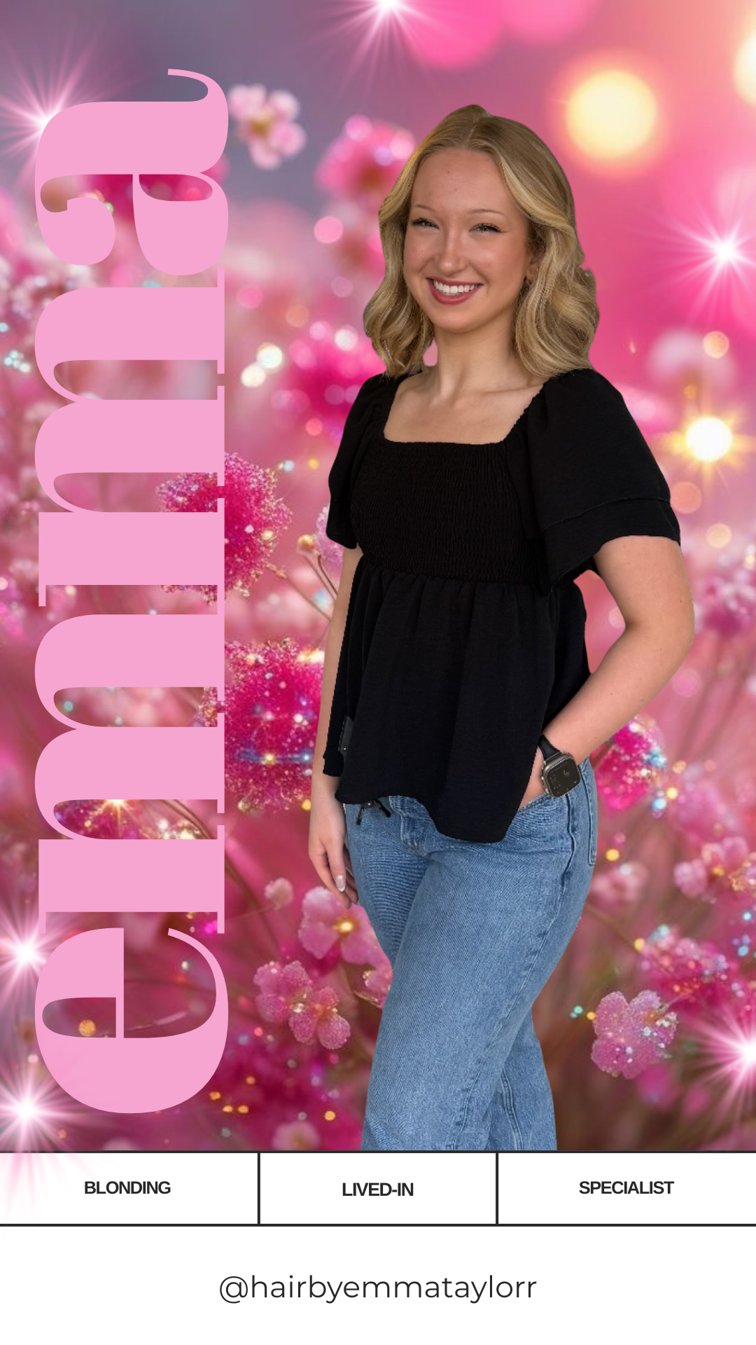 She's a stylist with drive and passion for blonding, lived-in color and styling. She specializes in creating natural, personalized looks that highlight each clients individual style.Combining creativity with precision cutting, Emma delivers effortless, beautiful results that feel uniquely you. Every appointment is an experience where your vision meets her artistry. Her goal is help you leave feeling confident, refreshed and beautiful- every time!
